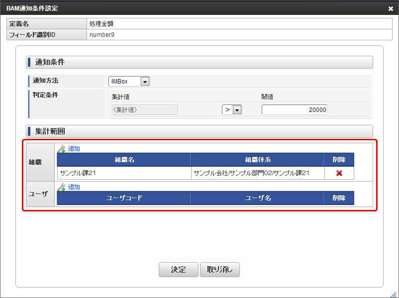 5.3.2. BAMの集計項目が設定条件に合致したときのメッセージを確認する¶