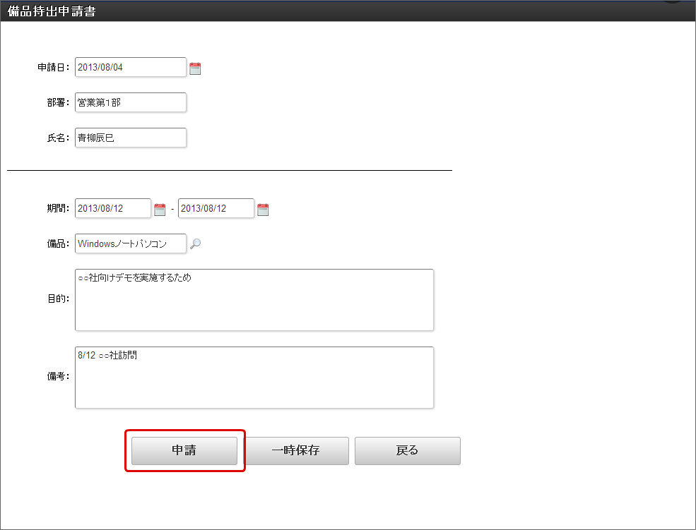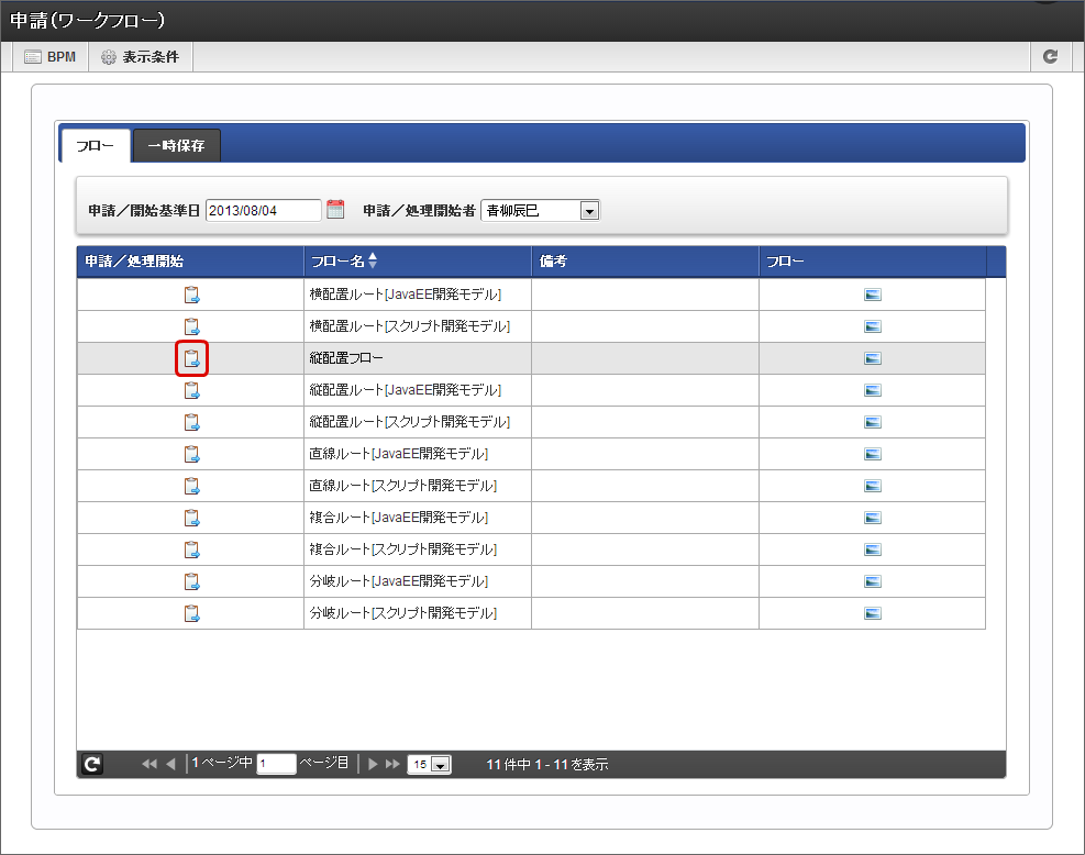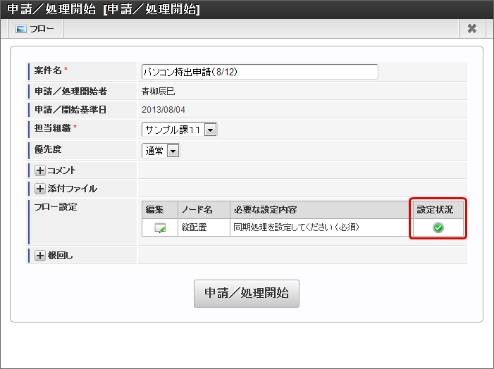 となっていることを確認し、「申請/処理開始」をクリックします。
