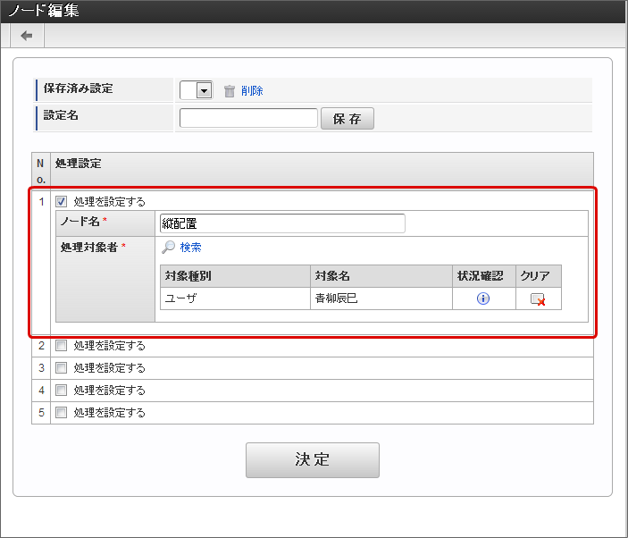 これで、縦配置ノードの1つに対する処理対象者を設定することができました。