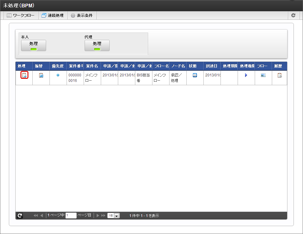これで、サブフローが開始できました。サブフローの処理は、処理対象者の未処理から実行することができます。