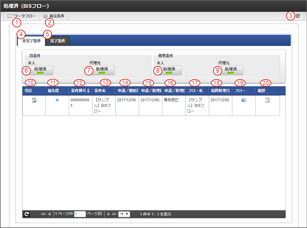 6.3.1. 「処理済(BISフロー)」画面の機能と各部の説明¶