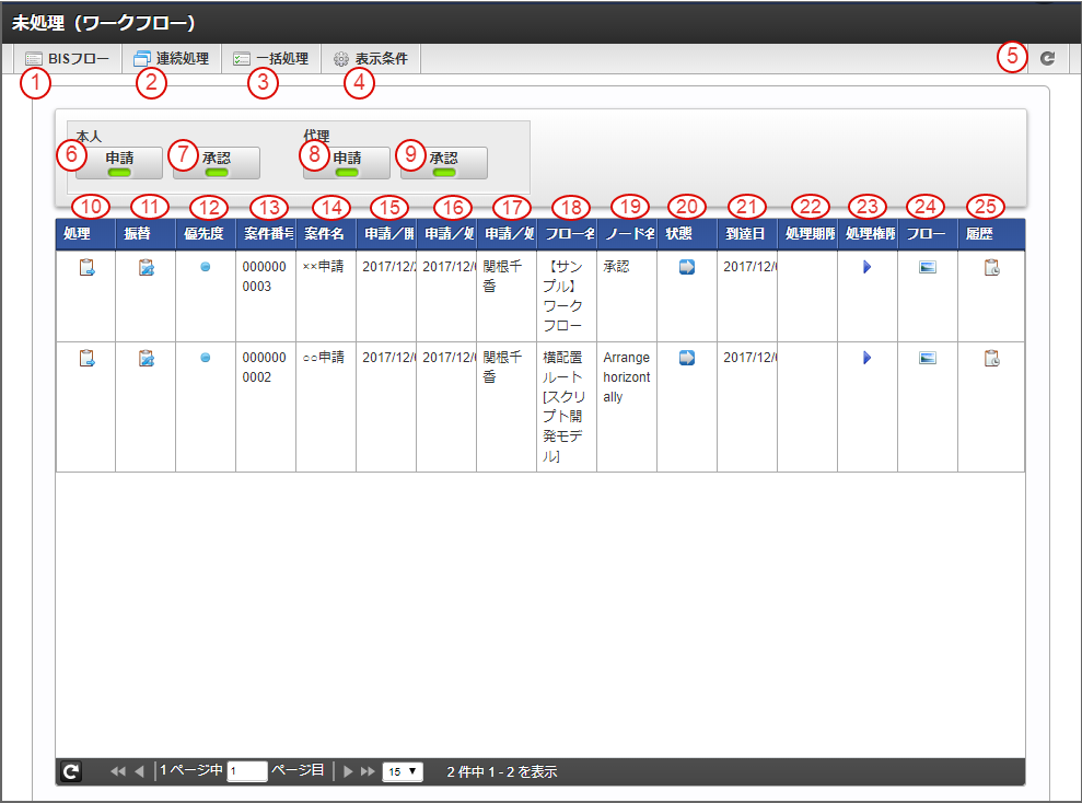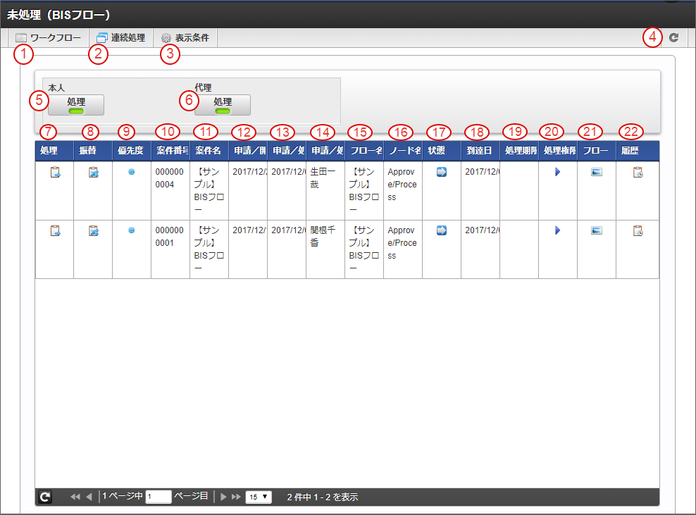 6.2.1. 「未処理(BISフロー)」画面の機能と各部の説明¶
