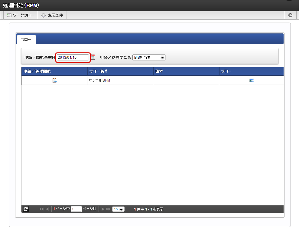 次の手順で、「処理開始(BISフロー)」画面からBISフローの処理を開始します。