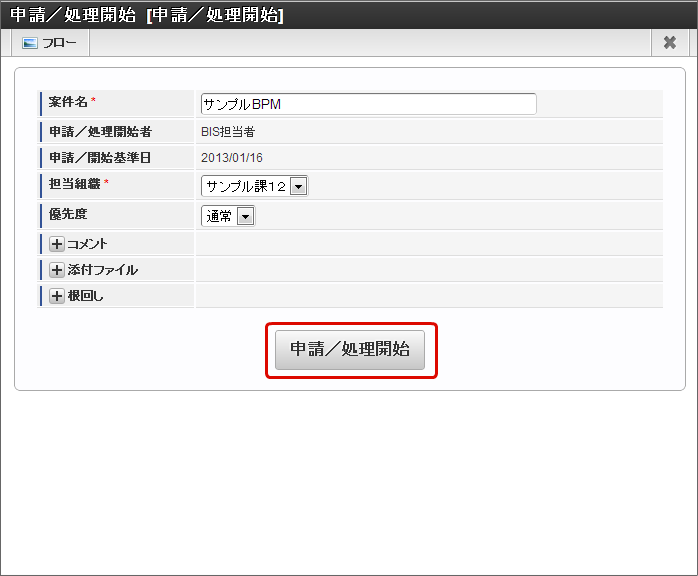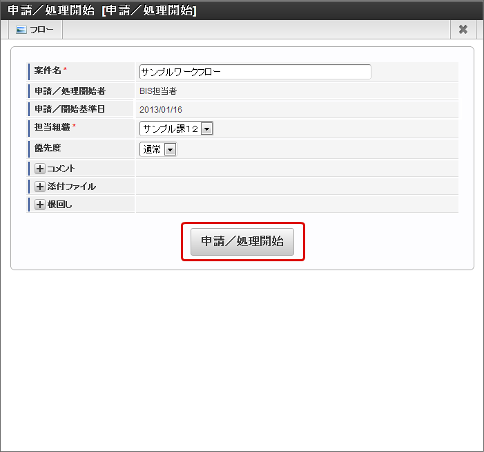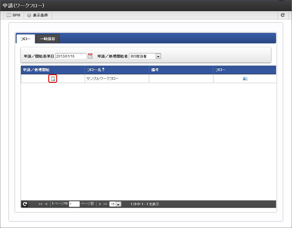 4.1.1. BISフローの処理を開始する/ワークフローの申請を行う¶