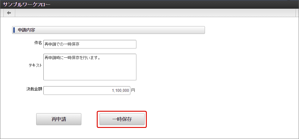 再申請時に入力した内容を一時保存する¶