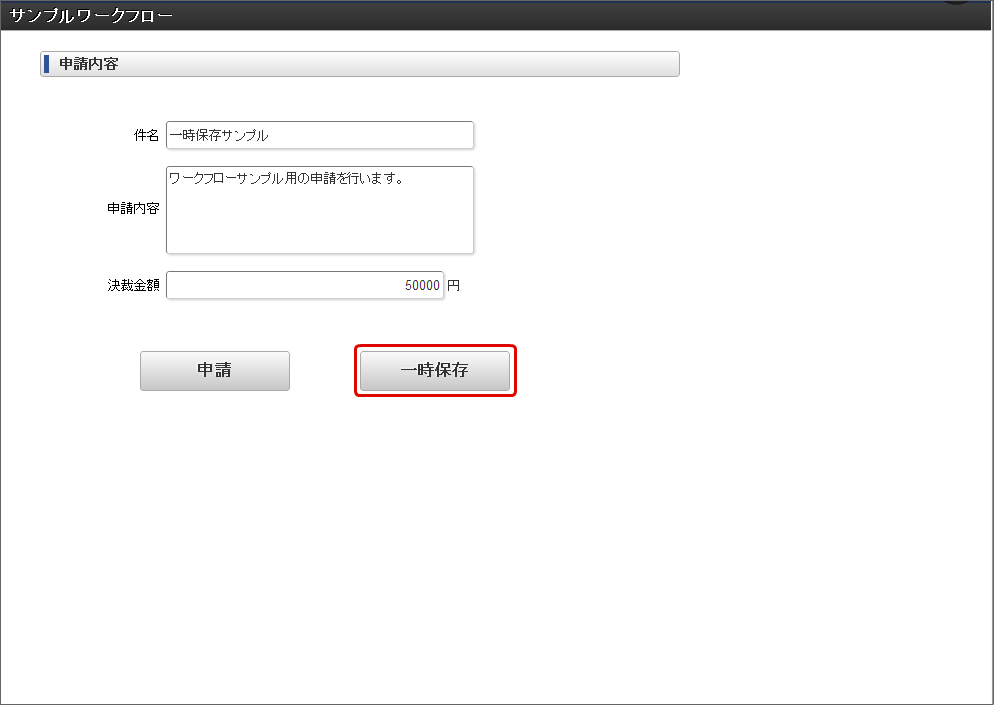 4.1.2. ワークフローの一時保存を行う¶