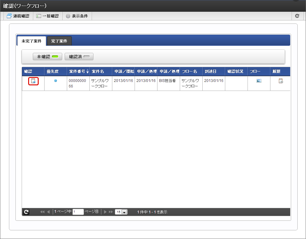 確認したい案件の、 をクリックします。