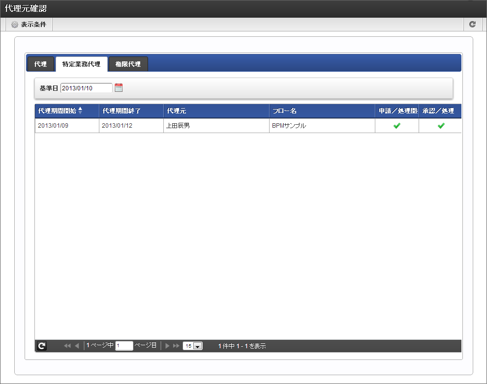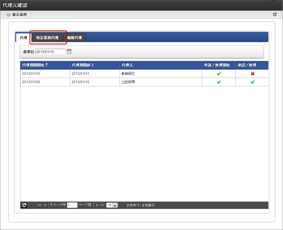 特定業務代理として設定されている内容を確認できます。