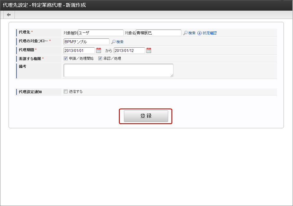 特定業務代理設定は、登録した時点で即時に反映されます。