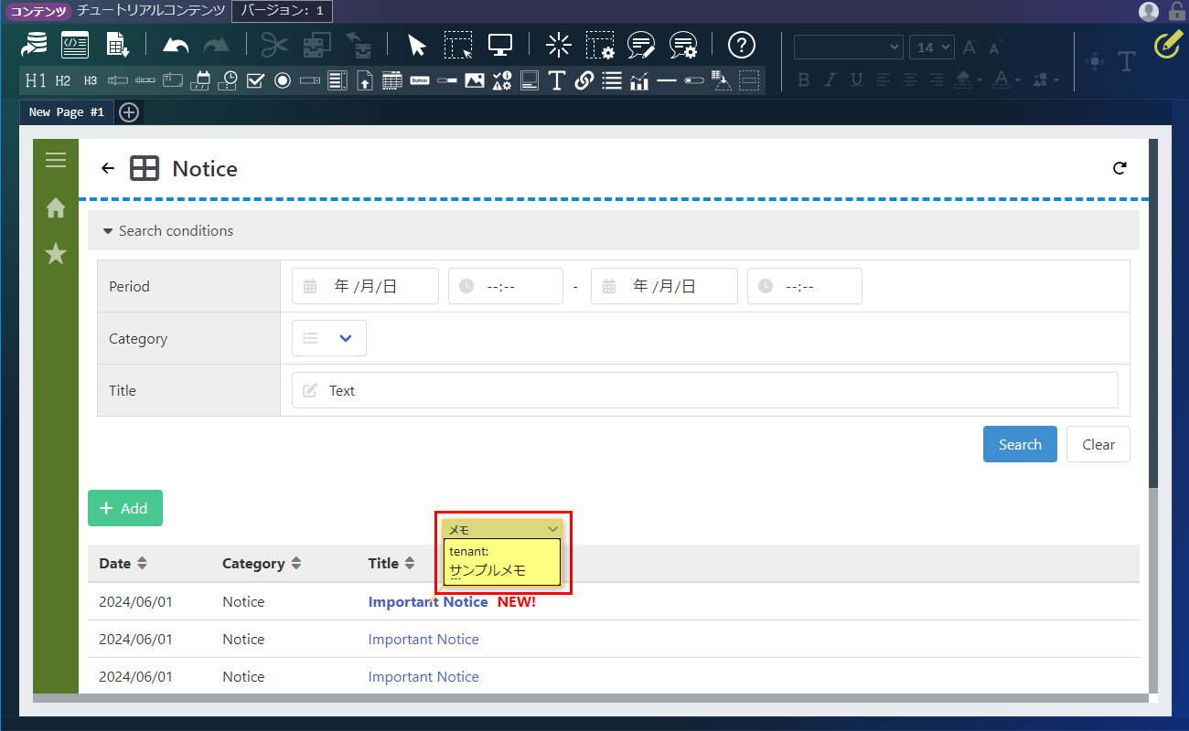 ヘッダの「メモ追加・編集」アイコンをクリックします。