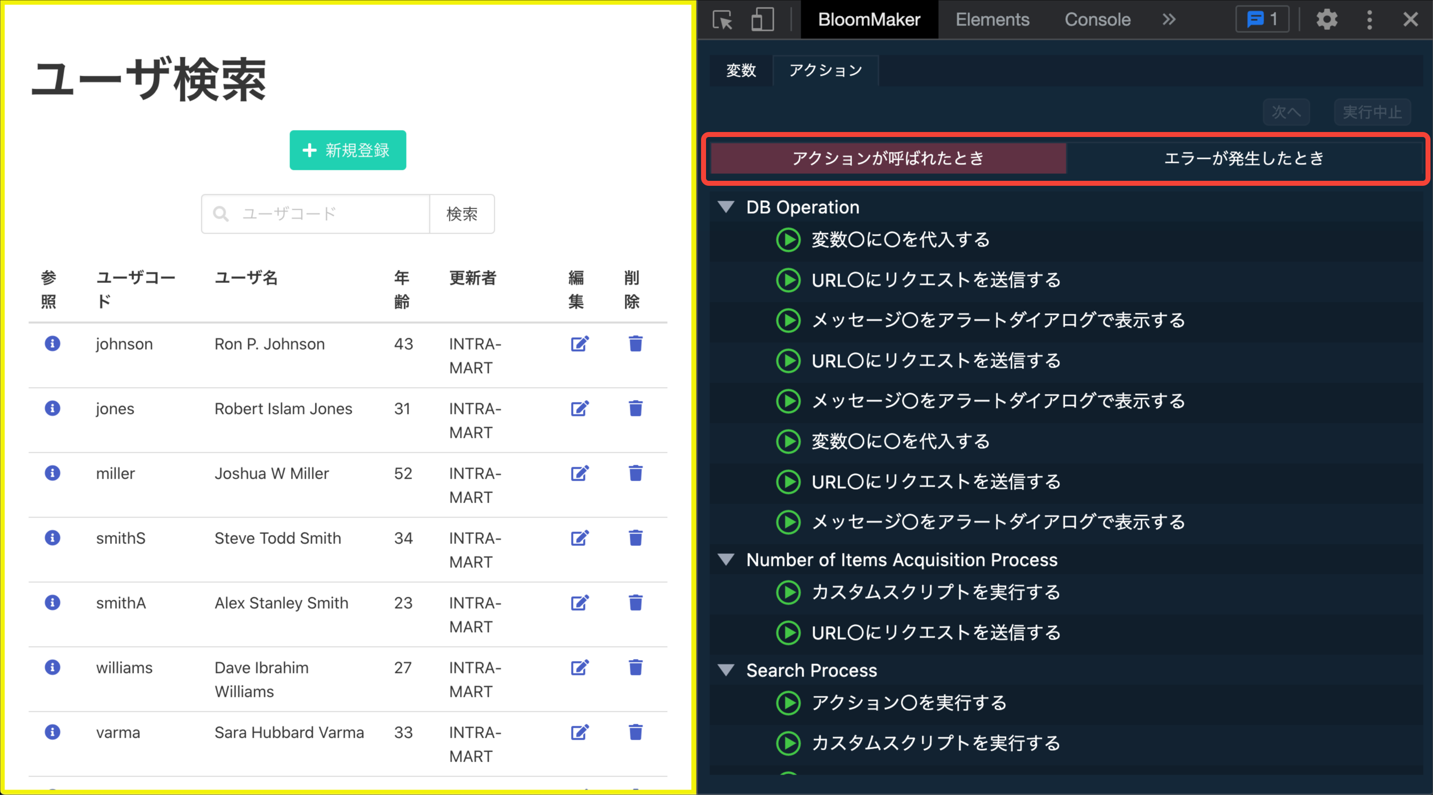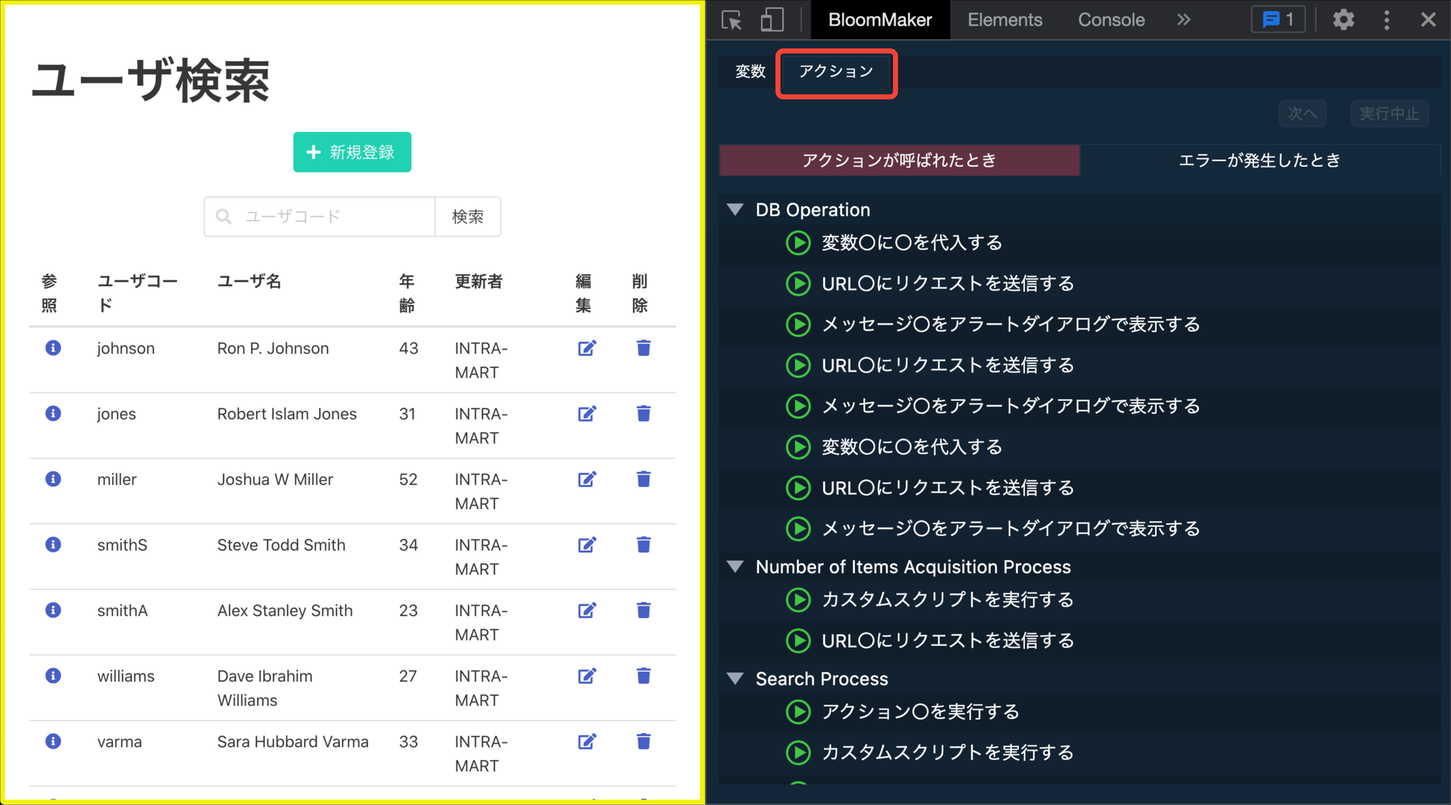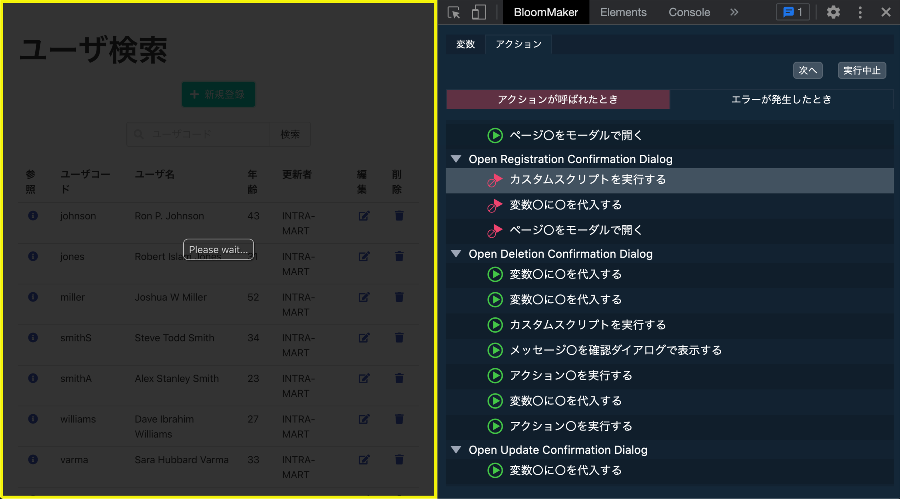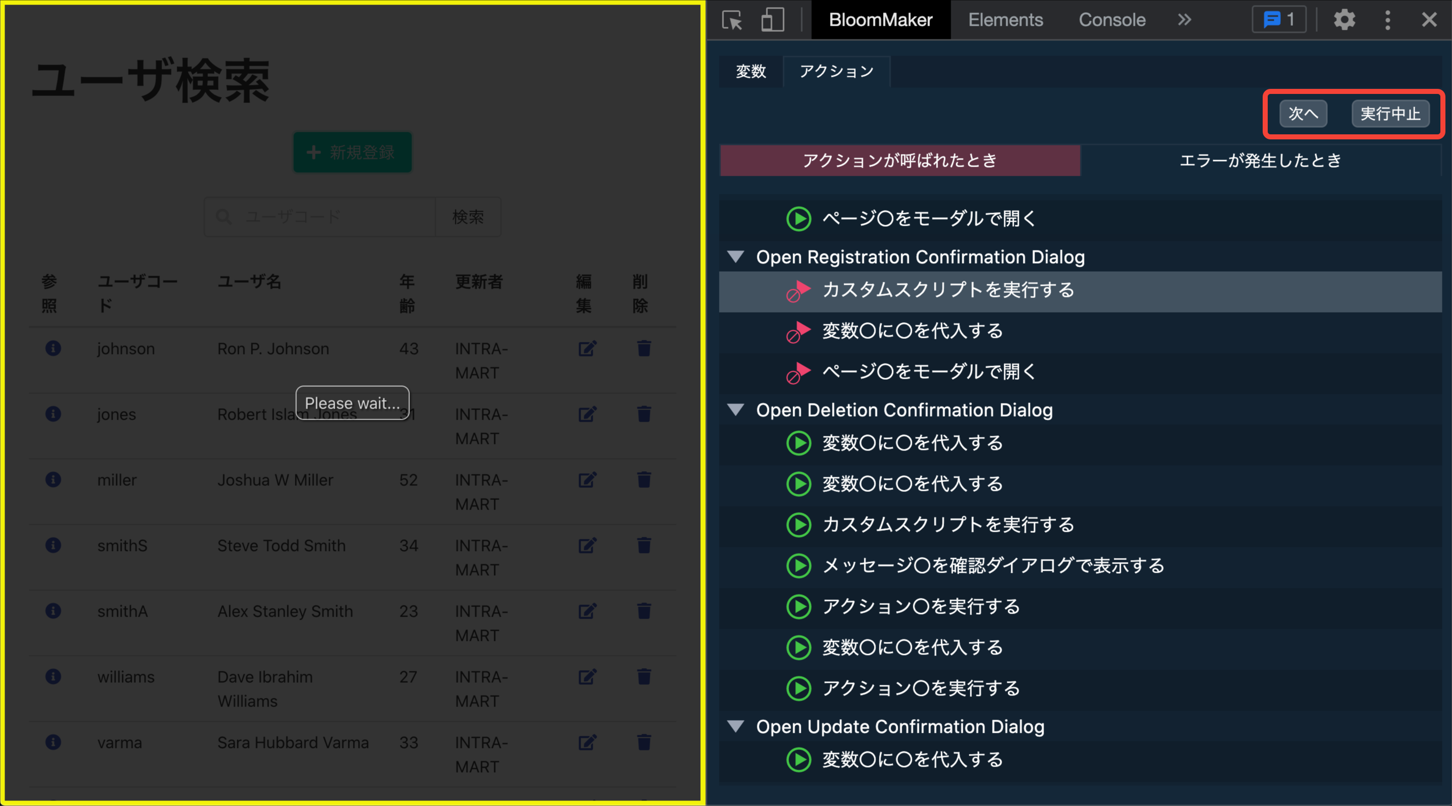 デバッグを行いたいIM-BloomMakerのプレビュー画面またはアプリケーション画面を開きます。