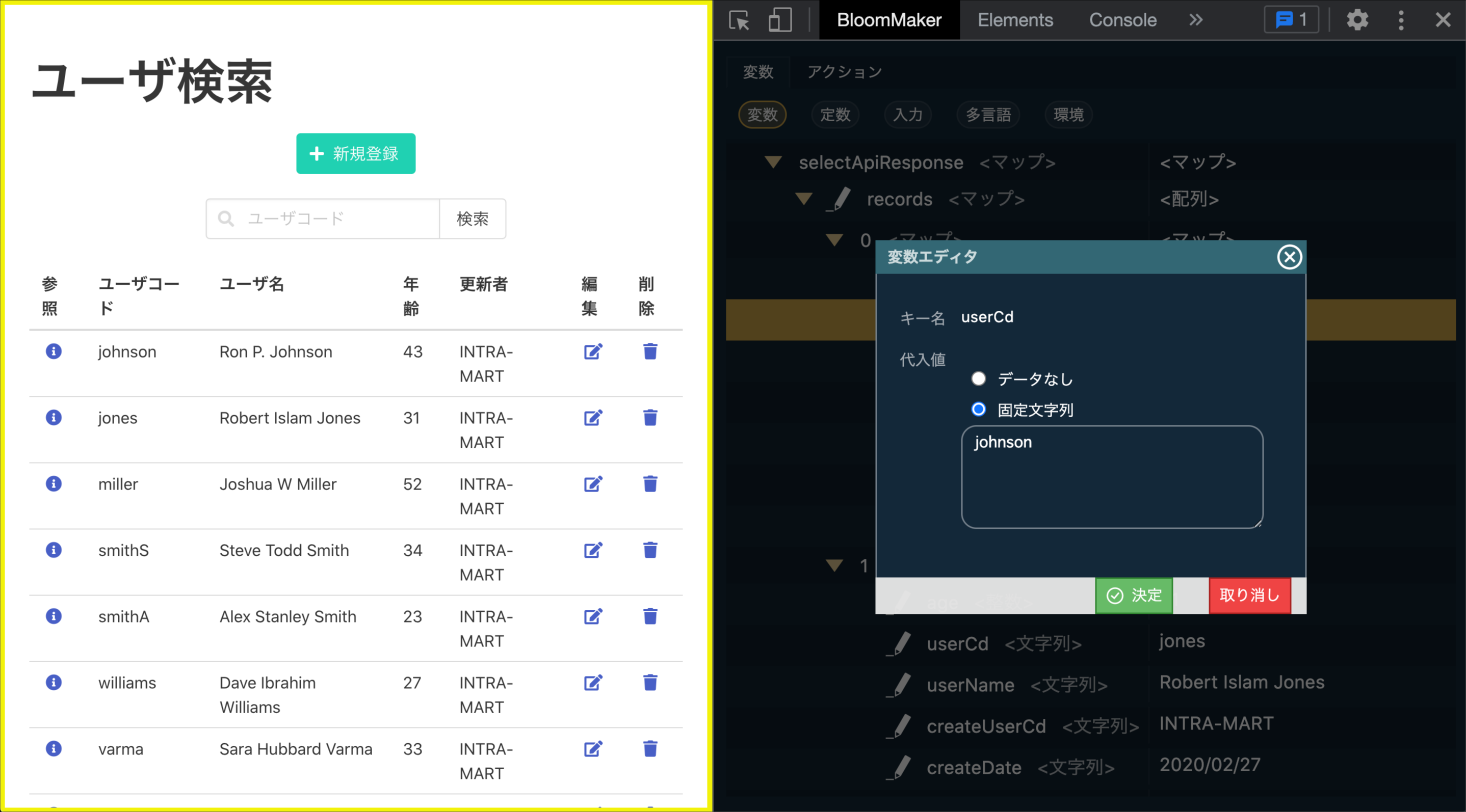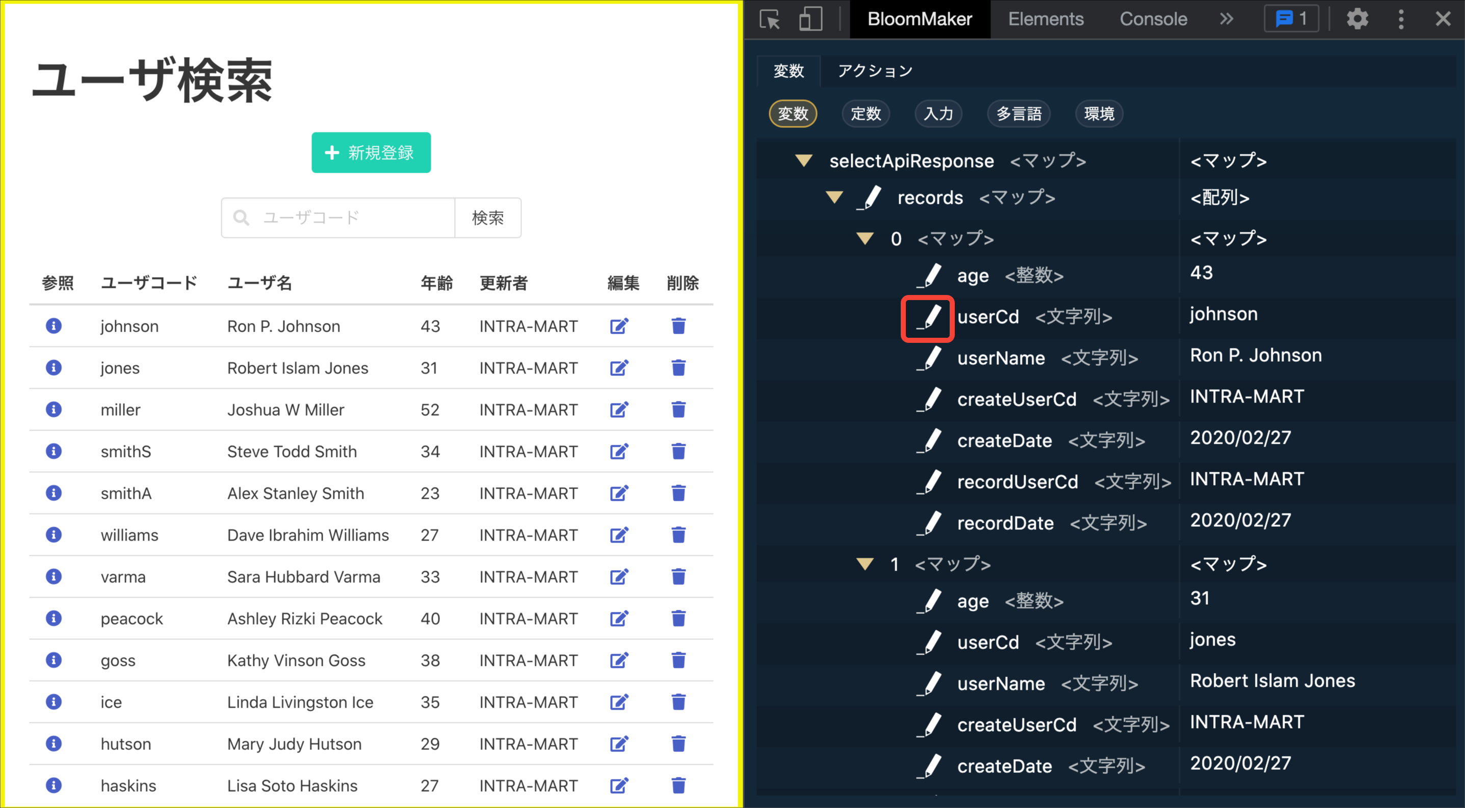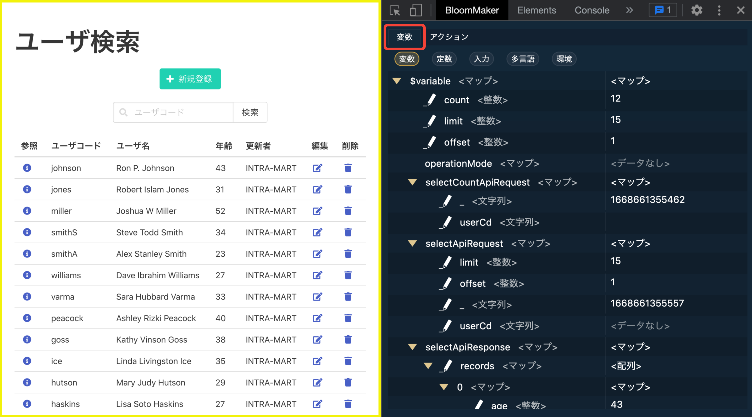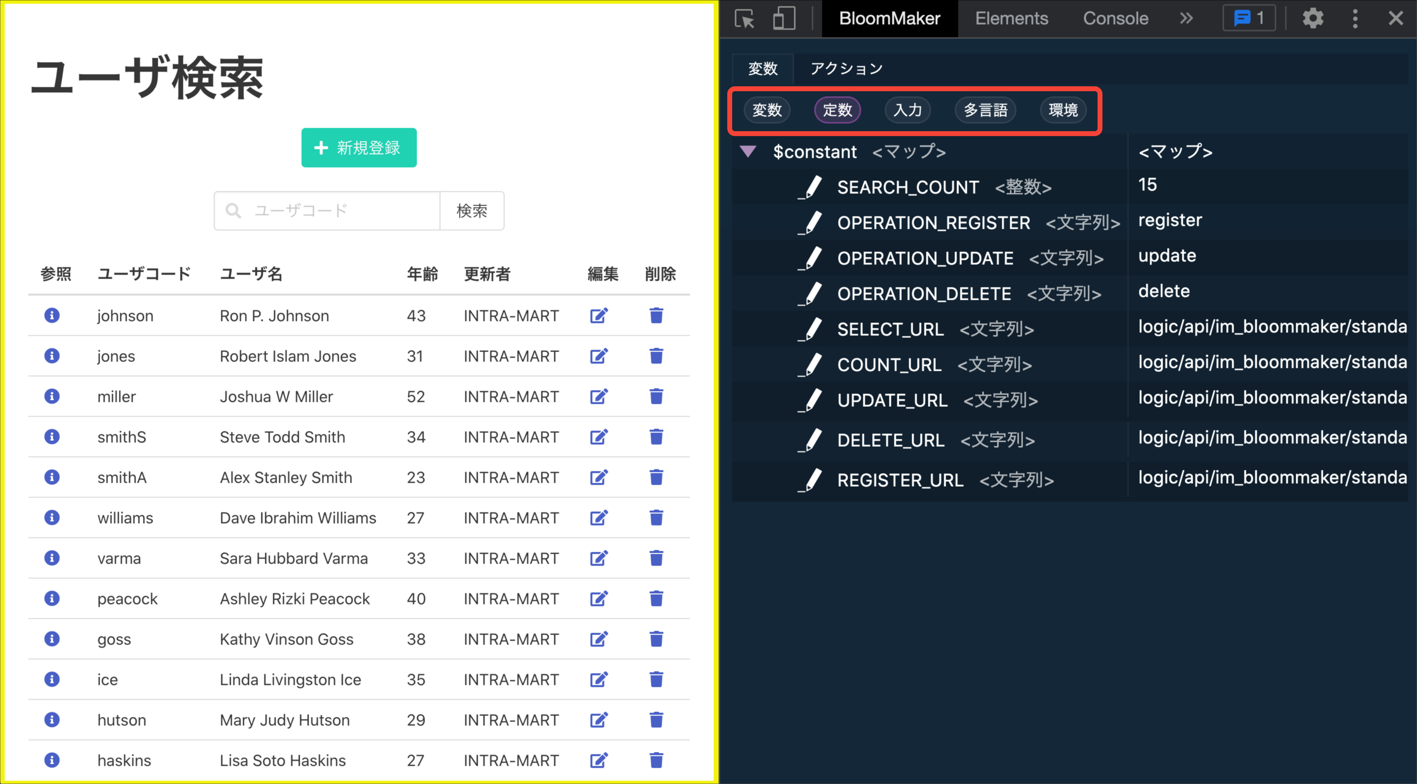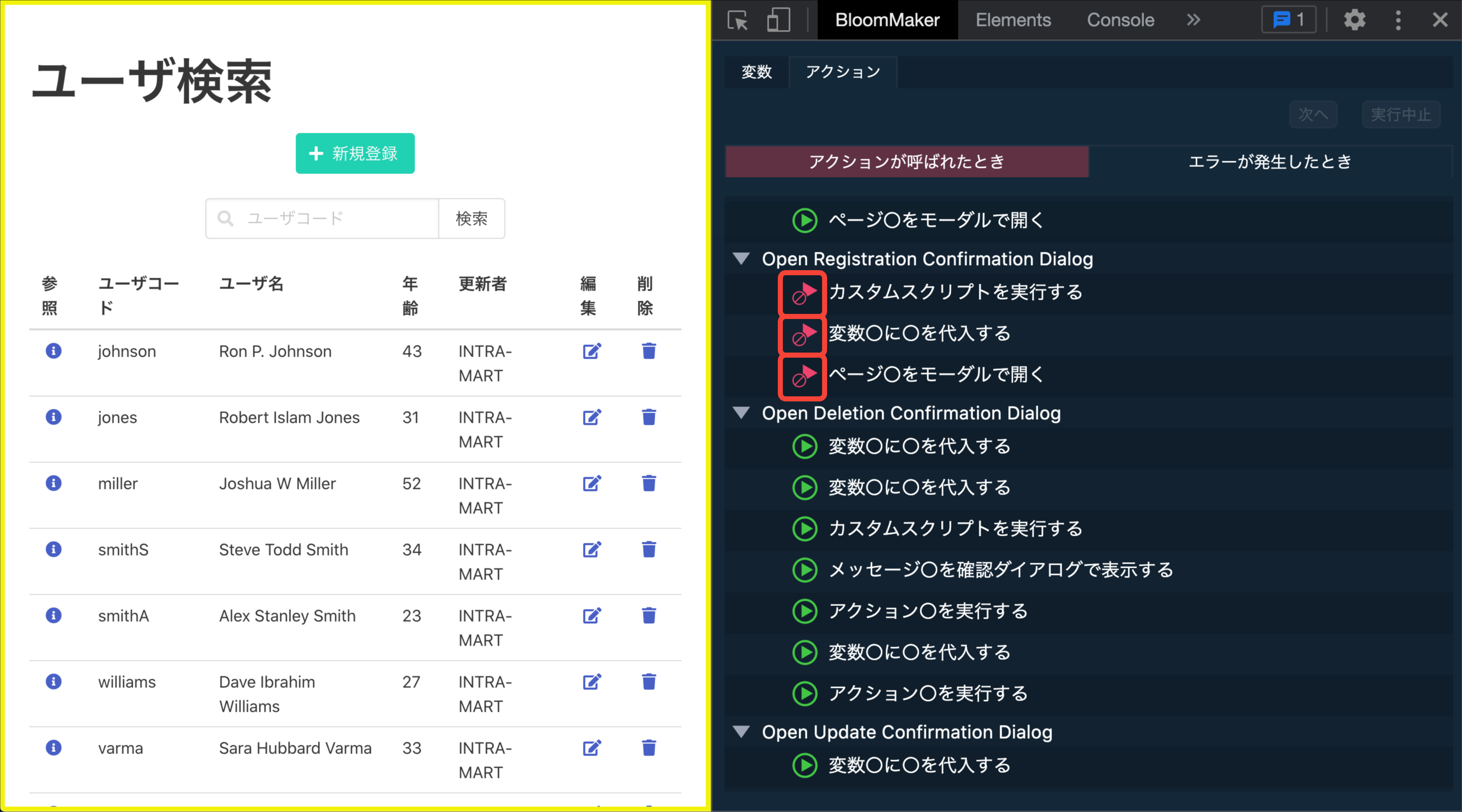 デバッグを行いたいIM-BloomMakerのプレビュー画面またはアプリケーション画面を開きます。
