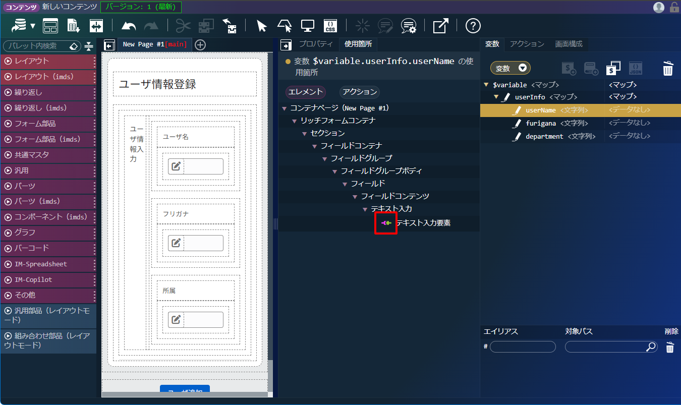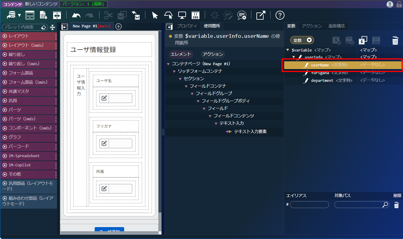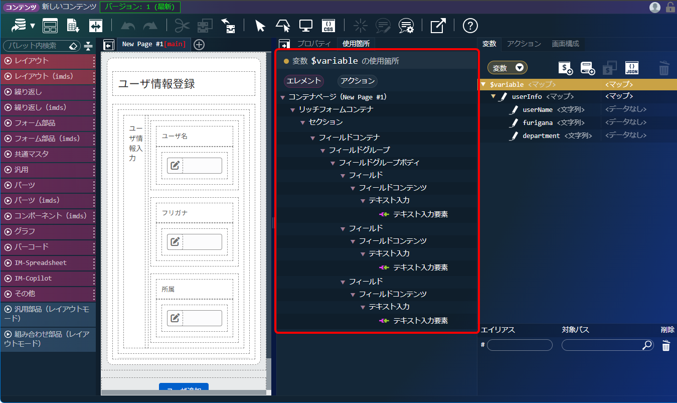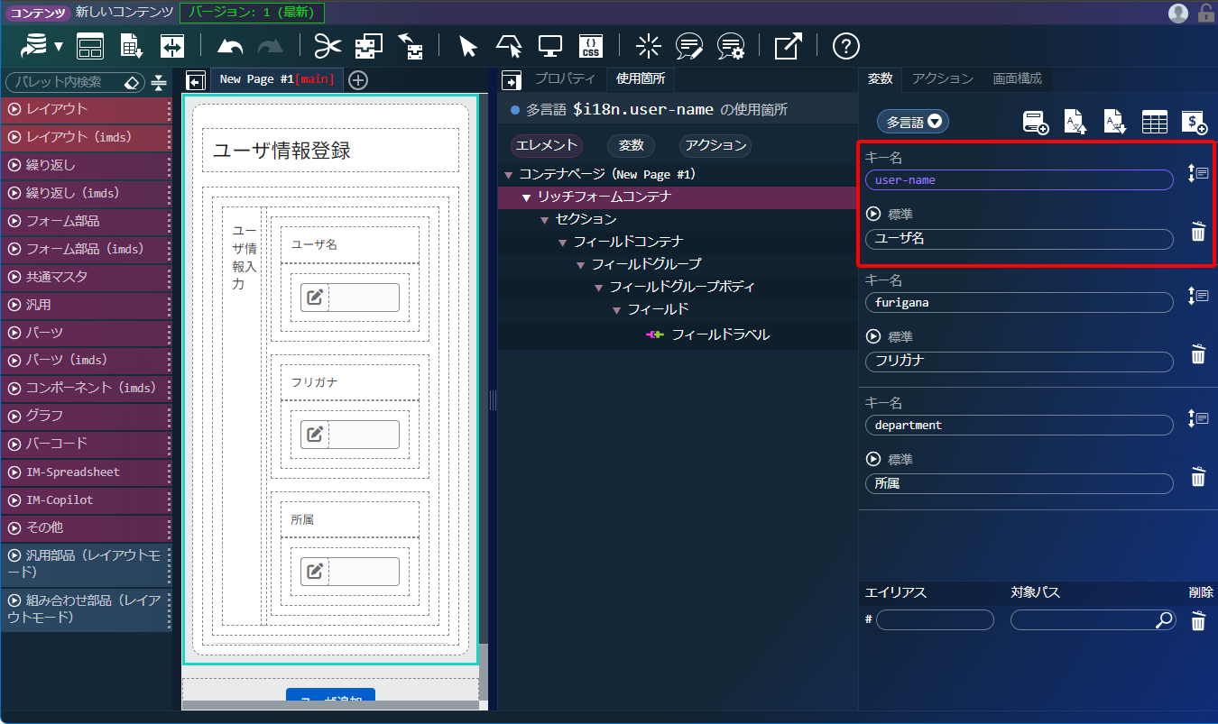 - 特定の変数・定数・入力・多言語・環境変数をプロパティに設定しているエレメント