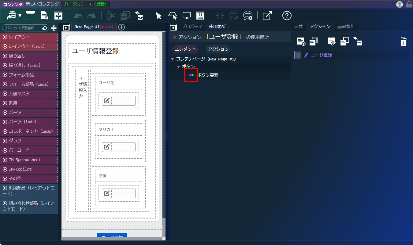- 特定のアクションをアクションアイテムのパラメータに設定しているアクション