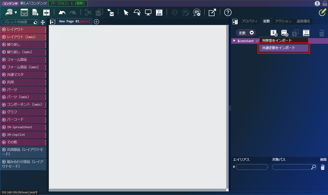 「共通定数をインポート」リンクをクリックします。