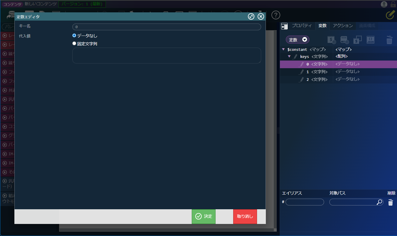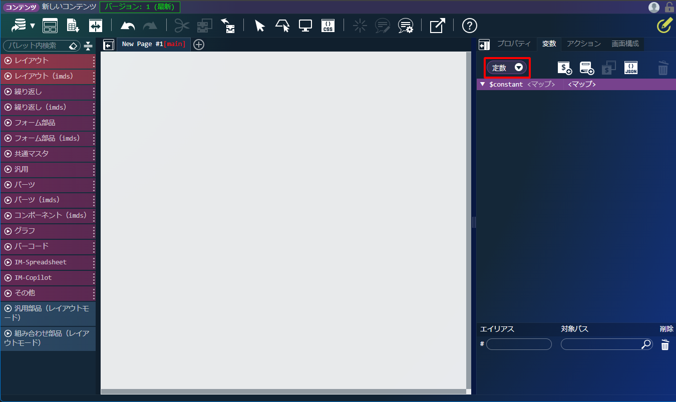 「新規作成」アイコンをクリックし、定数エディタを表示します。