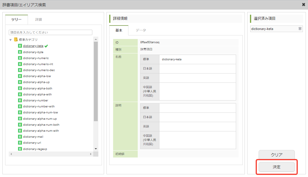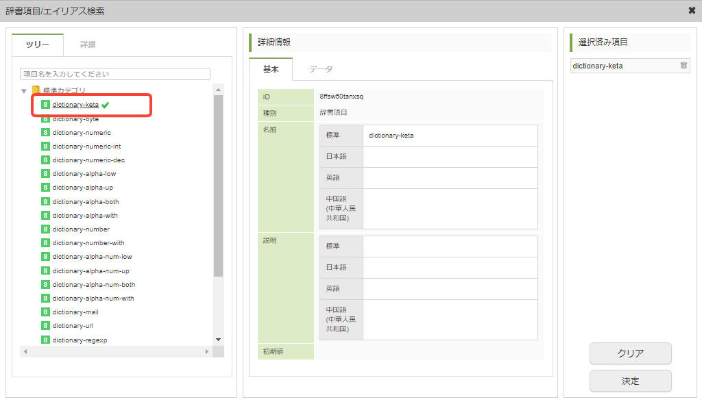 - 上記名称が未定義であった場合は辞書項目名(標準)を使用します。