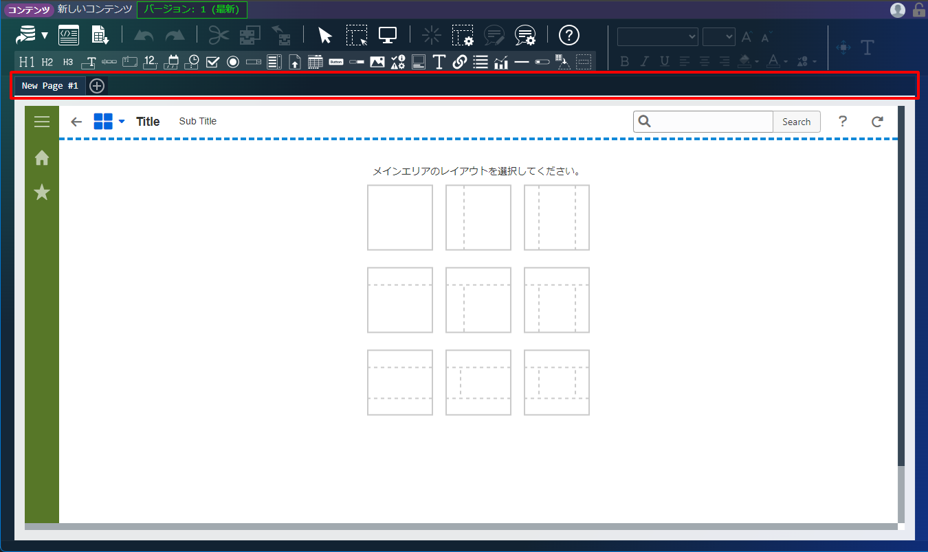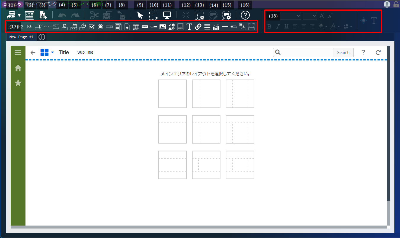 ヘッダにはレイアウト編集のためのアイコンが配置されています。各アイコンをクリックすると、その機能を利用できます。<画面項目>