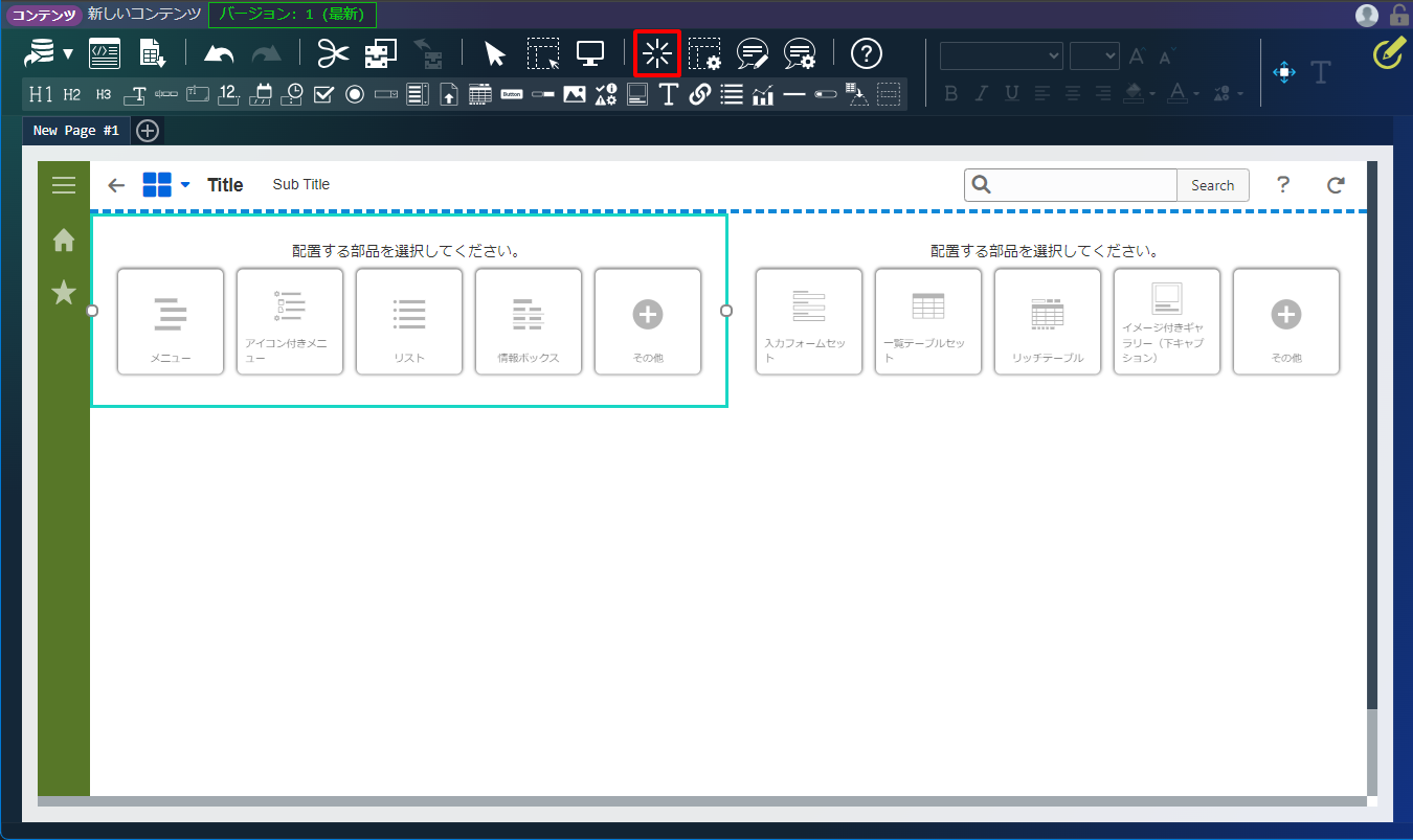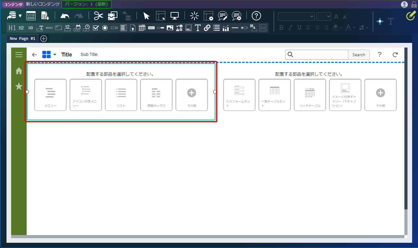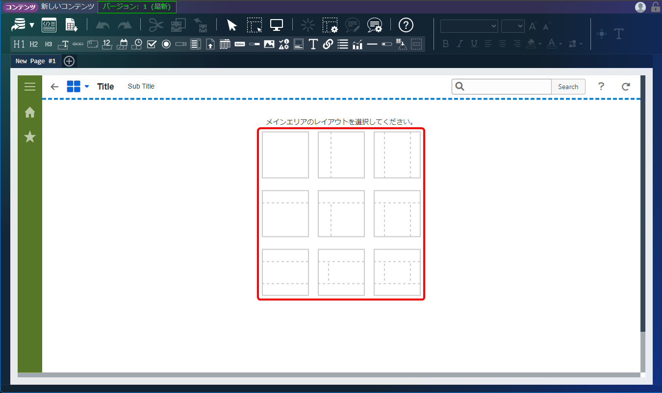 コンテンツウィザードのテンプレート選択で「レイアウト選択から」を選択した場合、デザイナ(レイアウトモード)画面を表示した時に画面のレイアウトを選択できます。