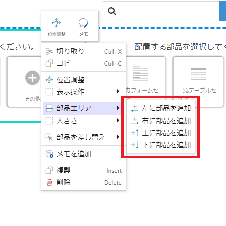 削除したいエリアを右クリックし、右クリックメニューの「削除」をクリックする