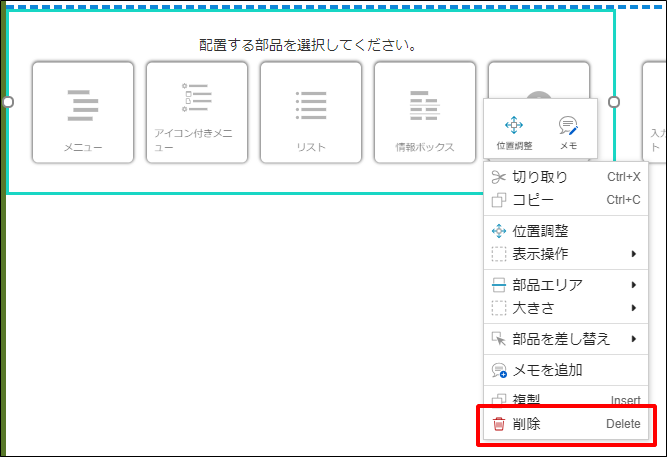 削除したいエリアを選択し、ヘッダの「削除」アイコンをクリックする