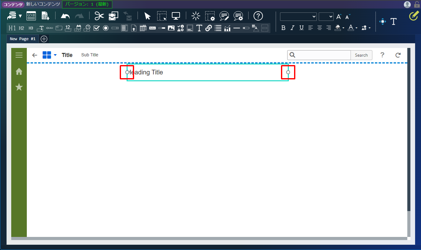 ツールバー、または、右クリックメニューの「位置調整」をクリックした場合、部品の上下左右にハンドルが表示されます。ハンドルをドラッグ&ドロップすることで部品の位置を調整できます。また、ハンドルをダブルクリックすると位置調整がリセットされます。部品の位置調整だけでなく、部品の右と下の余白も指定できます。コラム