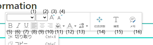 編集したい部品の上で右クリックすると、ツールバーが表示されます。ツールバーで部品の文字サイズの変更や行揃えの設定などの操作が可能です。