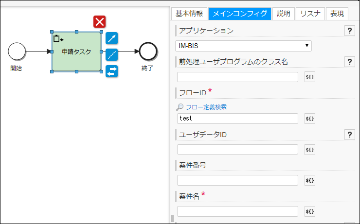 IM-BISを起票、または、申請する前の処理を差し込みます。