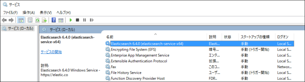 The service 'elasticsearch-service-x64' has been removedと表示され、「ローカルサービスの表示」から「elasticsearch」サービスが削除されていれば、削除は完了です。