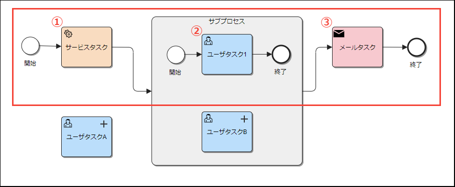 ユーザタスクAとユーザタスクBはオプショナルタスクであり、この実行の流れからは独立しています。