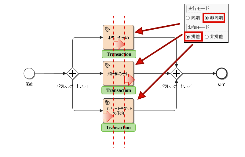 図:排他制御の非同期実行オプションを設定したプロセス実行イメージコラム