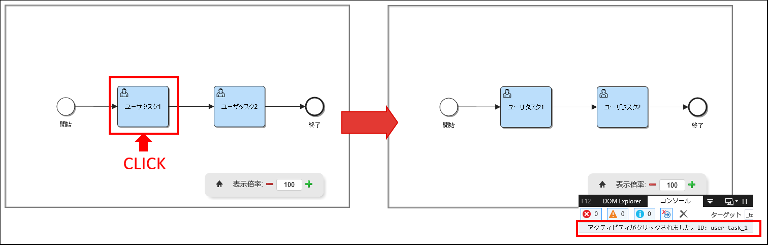 プロセス図内のアクティビティがクリックされると、activity-click イベントが発生します。