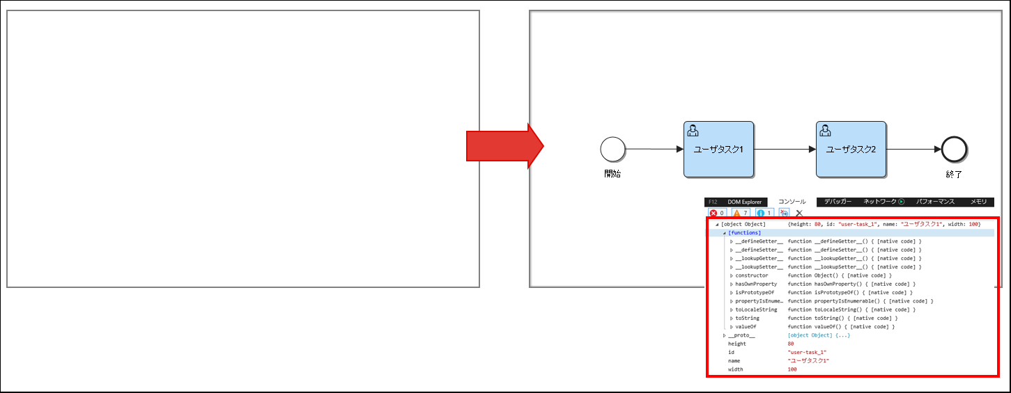 さらに、ブラウザ上で用意されているAPIを実行し、プロセス図を操作することも可能です。