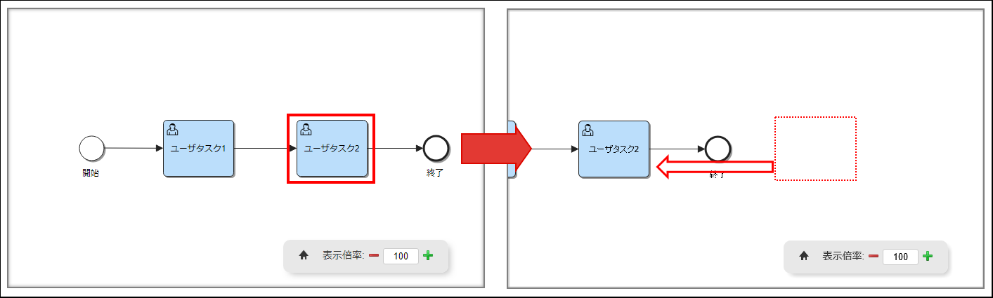 図:アクティビティが表示される位置へプロセス図を移動
