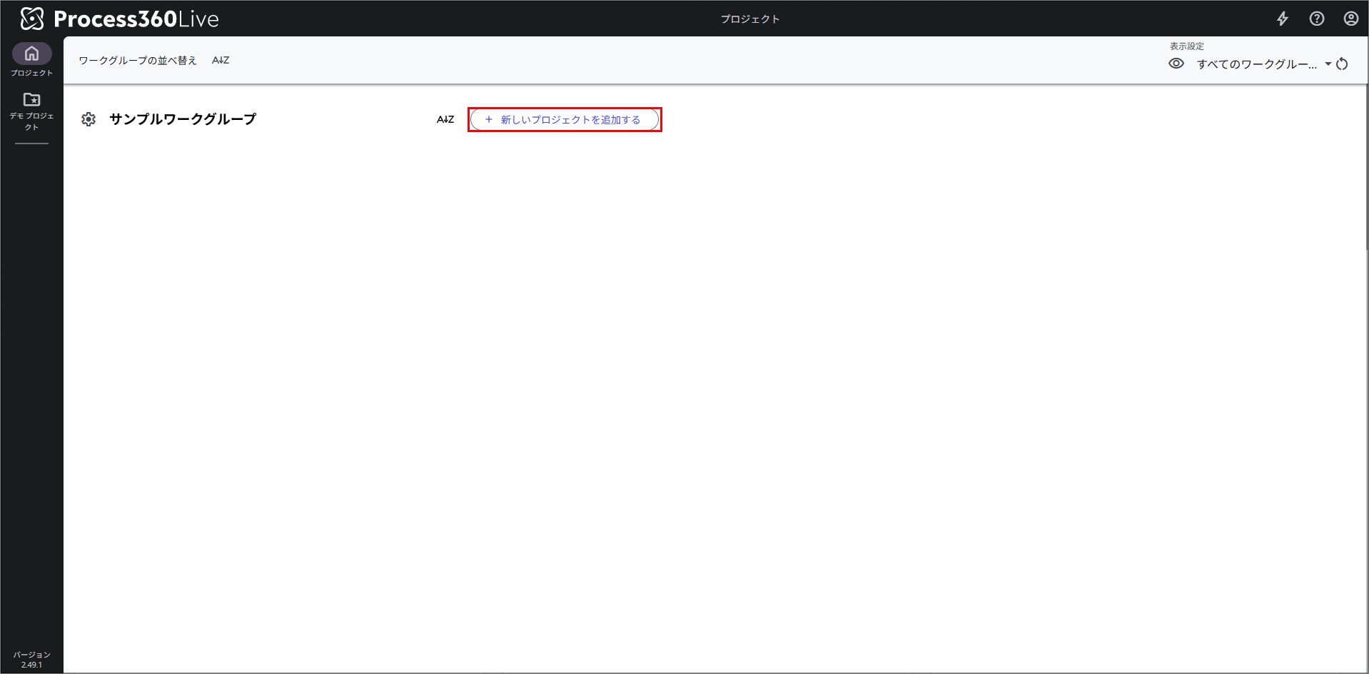 - 「プロジェクト一覧」画面で「+ 新しいプロジェクトを追加する」ボタンをクリックして、「新しいプロジェクト」ダイアログを表示します。