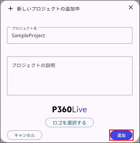 - 「新しいプロジェクトを追加中」ダイアログの「追加」ボタンをクリックします。