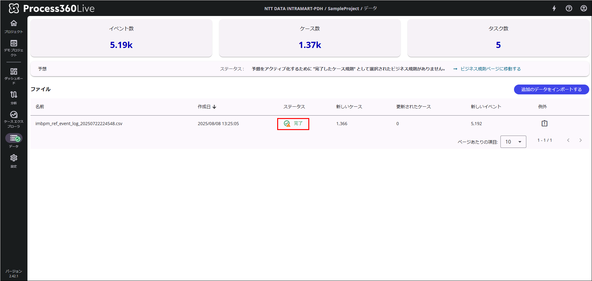 7.1.2.2. CSV出力したファイルを iGrafx Process360 Live に追加インポートする¶