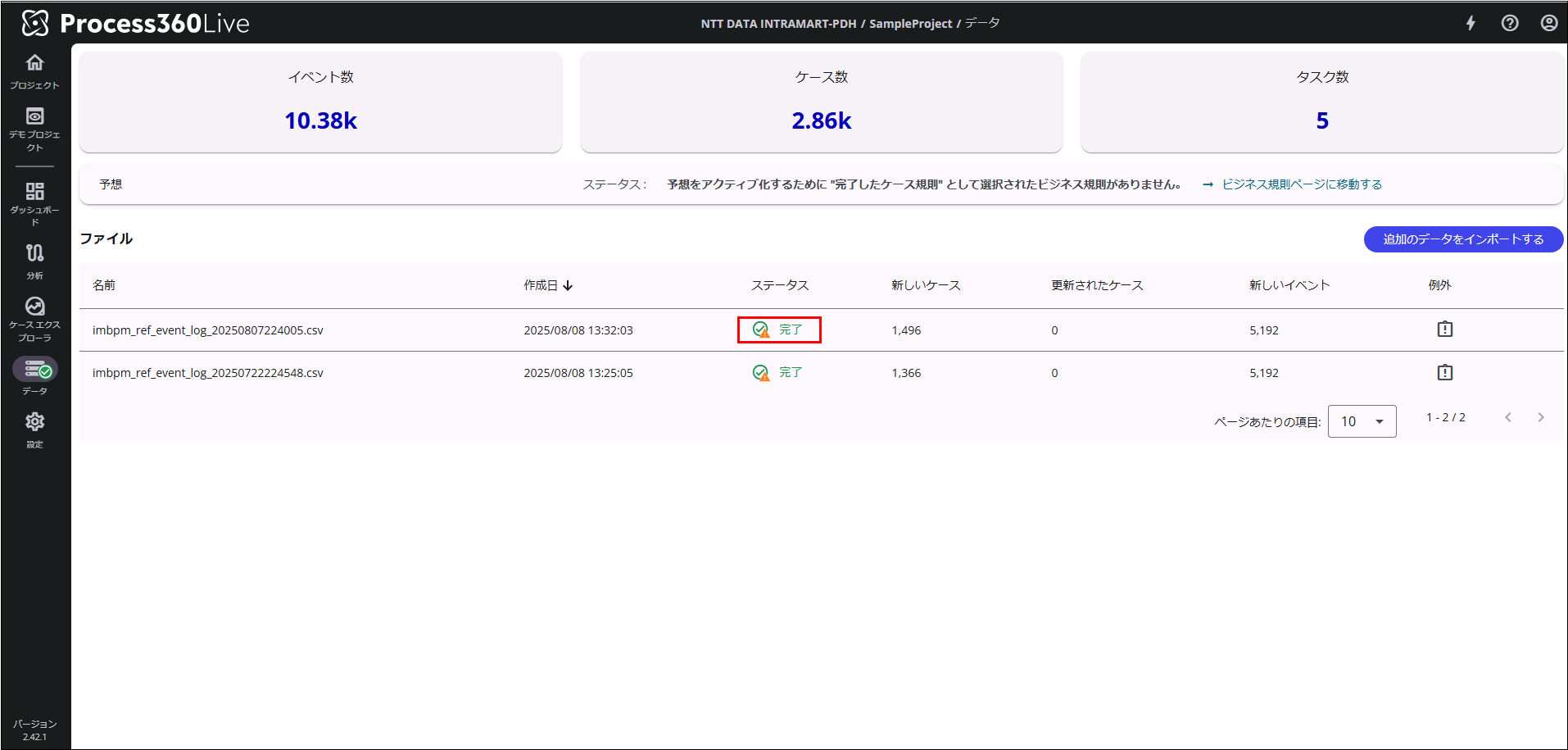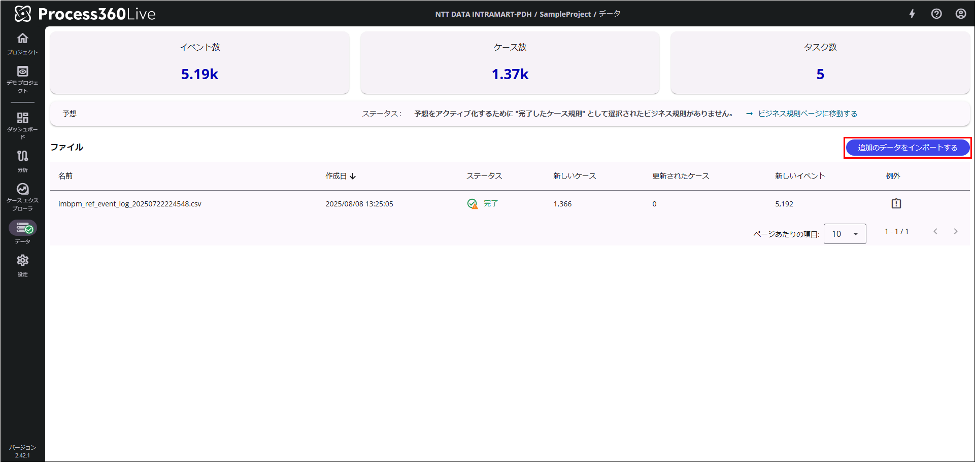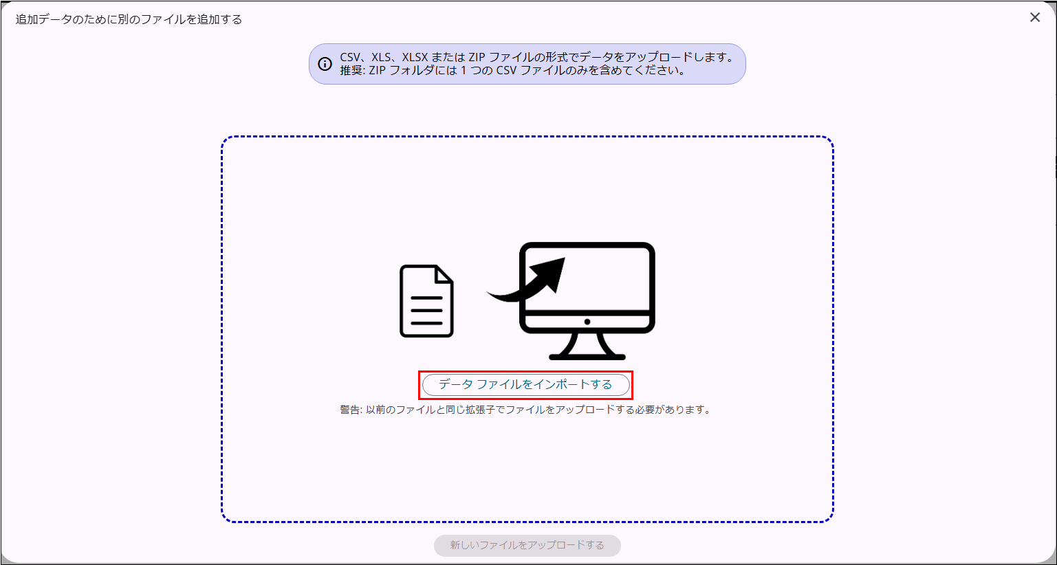 - 「追加のデータをインポートする」ボタンをクリックします。