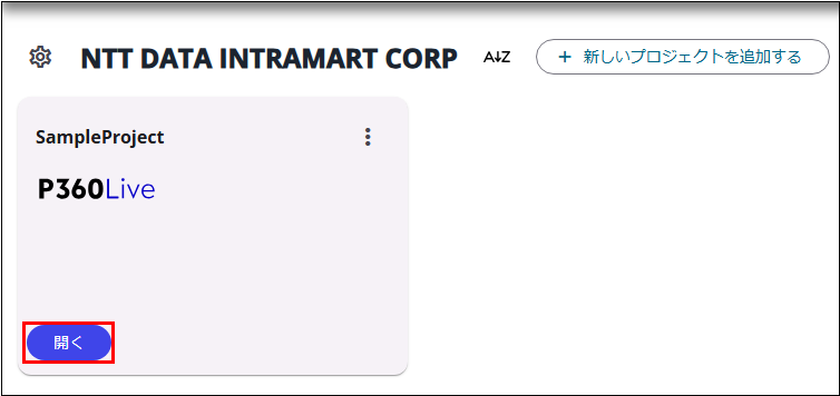 - 追加したプロジェクトの「開く」ボタンをクリックします。