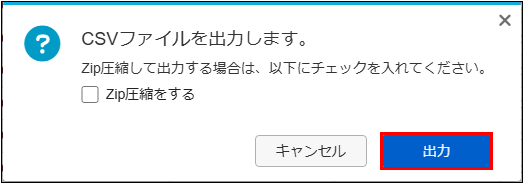 - CSV出力のダイアログの「出力」ボタンをクリックします。