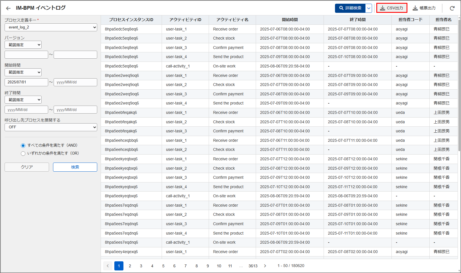 7.1.1.1. IM-BPM のイベントログをCSV出力する¶