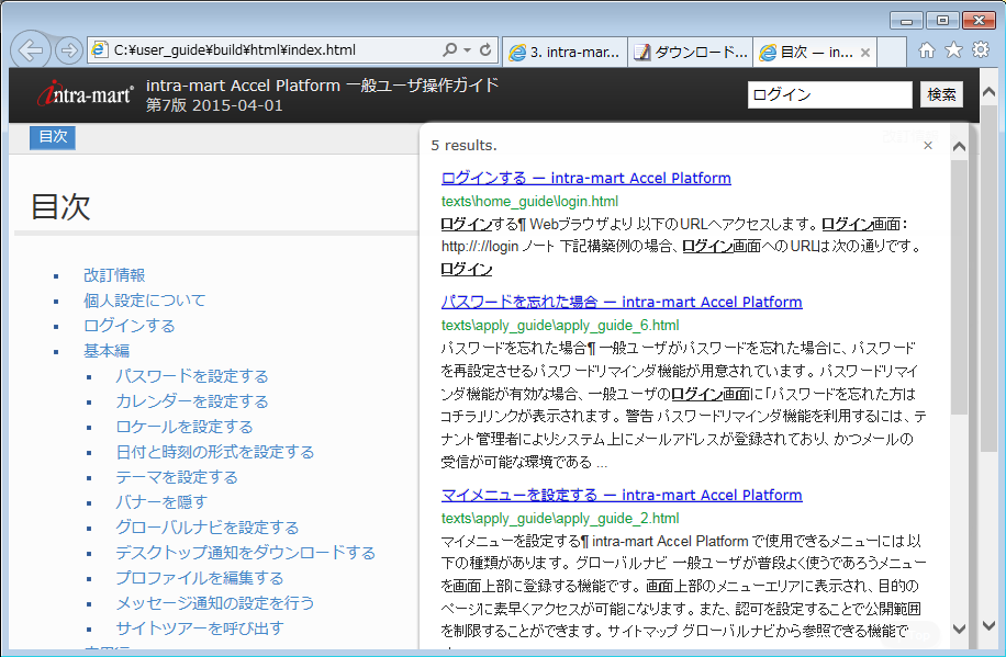 - ドキュメント内の全文検索を利用する場合次のセットアップが必要です。