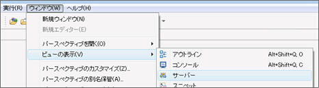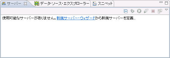 Eclipse のツール・バーから「ウィンドウ」→「ビュー」で「サーバ」を選択し、表示します。「サーバ」ビューから「新規サーバ・ウィザード」を表示します。