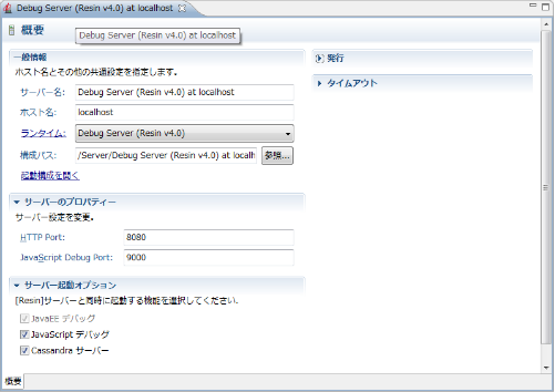 - Cassandra サーバ - デバッグサーバ起動時に Cassandra サーバを起動します。