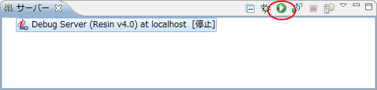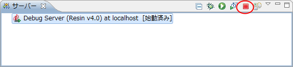 「サーバ」ビューで、「サーバを停止」ボタンを押下すると、デバッグサーバが停止します。![]()