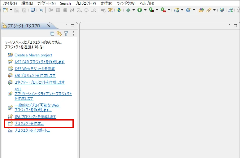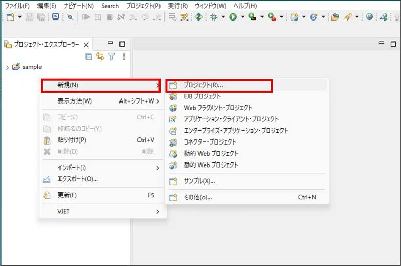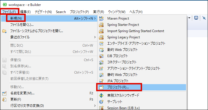 e Builder のメニュー・バーから、「ファイル」→「新規」→「プロジェクト」を選択します。