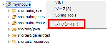 対象となるプロジェクトに対して右クリックし「プロパティ」を選択します。
