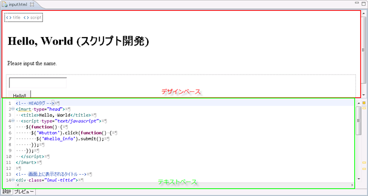 本項では、スクリプト開発を行う際に利用できる HTML エディタの機能について説明します。e Builder で提供されている HTML エディタは、 Eclipse WTP で提供されている Web ページ・エディタの機能を拡張しています。