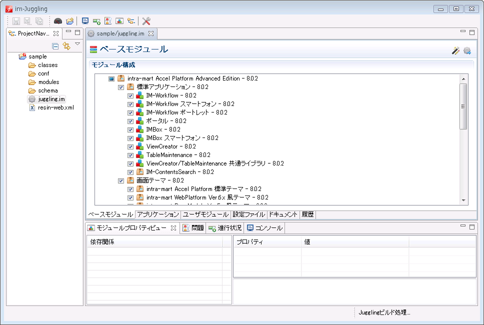 IM-Juggling はモジュールの管理、warファイルのリモートデプロイを実行できる環境構築ツールです。このツールを使用し、インストールやパッチの適用をします。注意