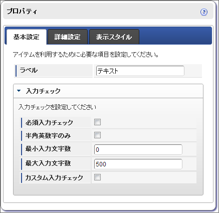 - ユーザ入力チェック時の入力フィールドの最大入力文字数を設定します。